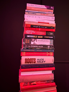 All About Love ne se contente pas d'être regardée ; elle se vit. C’est une expérience totale où les toiles monumentales discutent avec des vidéos, des photographies et des collages. Entre deux œuvres, on croise les ouvrages de James Baldwin, de Lorraine Hansberry ou d'Angela Davis, mais aussi les couvertures du magazine Jet. Cette présence littéraire, de la poésie de Sonia Sanchez aux essais de Toni Morrison, n’est pas là pour le décor : elle ancre l’œuvre dans une généalogie de pensée et de dignité.